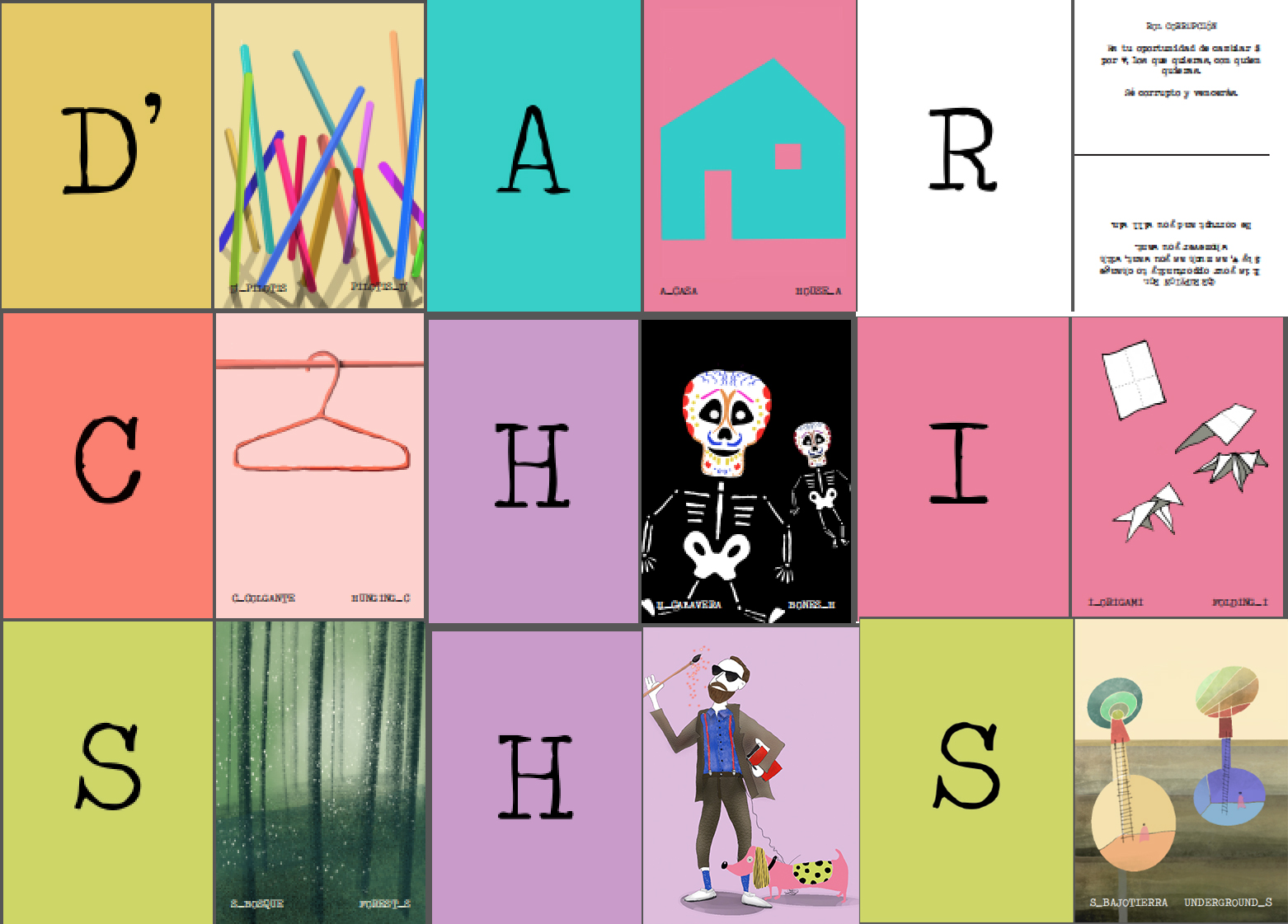 100 CARTAS————– CARTAS DE CONDICIONES : 6 CATEGORIAS (D-A-C-H-I-S) D-ispositivos (11 CARTAS) A-rquitecturas (11 CARTAS) R-andom (33 CARTAS DINAMIZADORAS) C-onceptos (11 CARTAS) H-abitantes (11 CARTAS) I-nstrucciones (11 CARTAS) S-ituación (11 CARTAS) TABLERO/INSTRUCCIONES ROLES : 1 carta ++D’ARCHISeXTENSION+DESIGN!….. 66 cartas EXTRA Propón TUS propias cartas a: darchisgame@gmail.com D’ARCHIS tiene 100 cartas con las que tendrás 100.564.321 posibles retos… Leer más